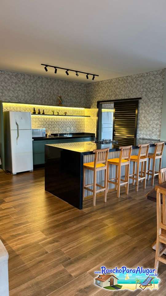 Churrasqueira em alvenaria, Freezer, cervejeira, fogão industrial e pia bebedouro de água