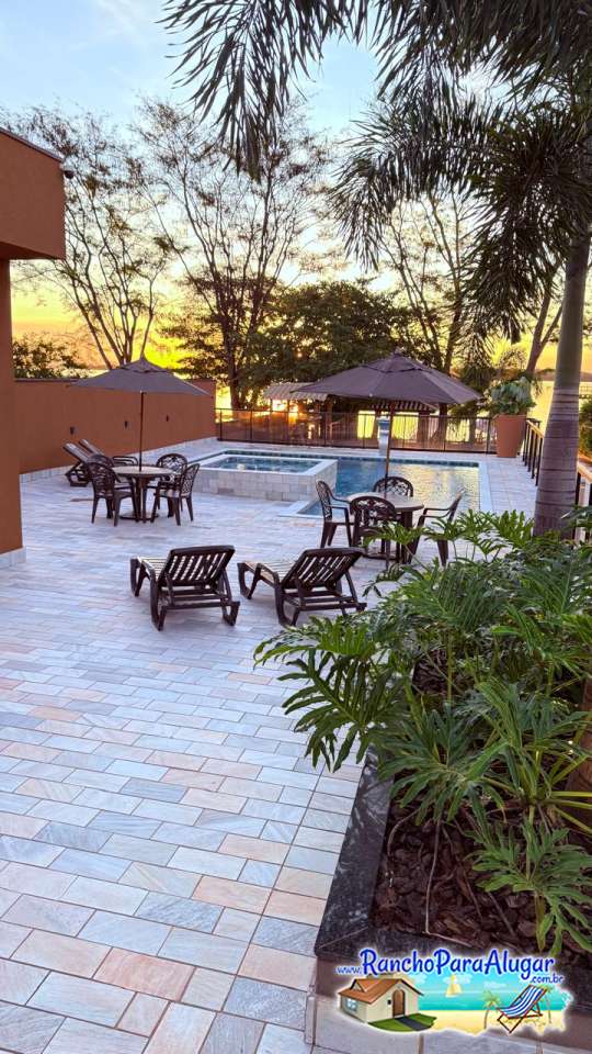 Rancho com ótima localização, Piscina adulto, Píer com Quiosque iluminado e ampla varanda com área para churrasco, com 06 suítes e um grande estacionamento dentro do rancho, às margens da represa do Rio Grande em Miguelópolis Sp.