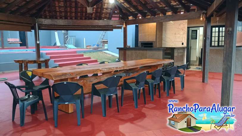 Amplo Quiosque com área para churrasco com churrasqueira de alvenaria e pia